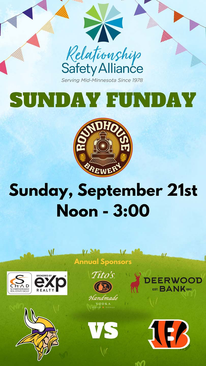 Sunday FUNdayRelationship Safety AllianceJun 29, 20251 min readSunday, September 21, 2025 from Noon-3pm at Roundhouse Brewery - 23836 Smiley Rd, Nisswa, MN